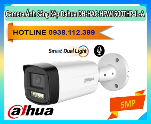 Camera Dahua DH-HAC-HFW1500THP-IL-A hỗ trợ độ phân giải 5.0MP, cảm biến CMOS, ghi hình 25fps@2880×1620. Tích hợp ánh sáng kép thông minh với tầm xa 80m, ống kính cố định 3. 6mm góc nhìn 90