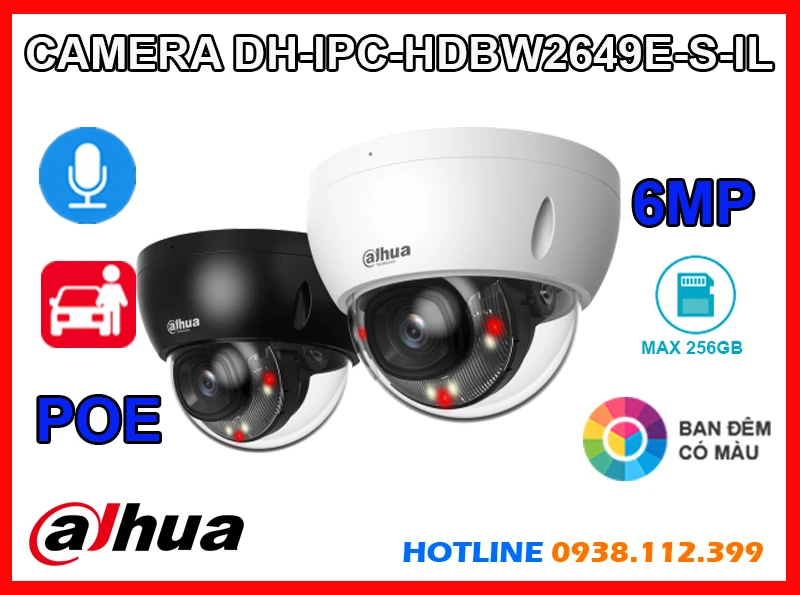 Camera IP Dome DH-IPC-HDBW2649E-S-IL là giải pháp giám sát an ninh vượt trội với độ phân giải cao lên đến 6MP sắc nét, hỗ trợ PoE và ghi âm tiện lợi. Nhờ công nghệ full color cho hình ảnh có màu ban đêm cùng tầm nhìn hồng ngoại lên đến 30m.