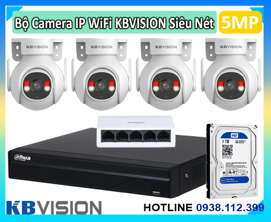Trọn Bộ 4 Camera KBVision WiFi Quay Quét 5MP – Giải Pháp An Ninh Toàn Diện Cho Mọi Không Gian